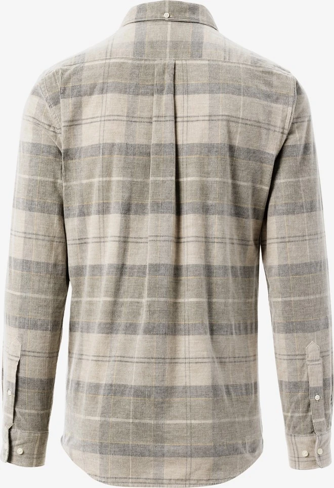 - Long-sleeve, button-down collar shirt with plaid pattern