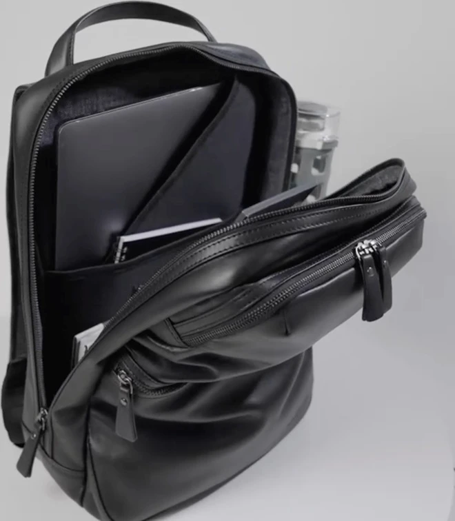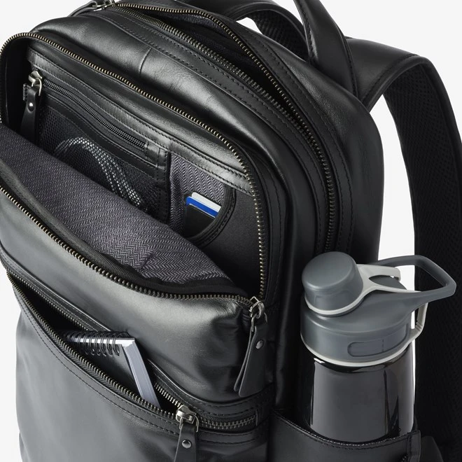 - Sleek leather backpack