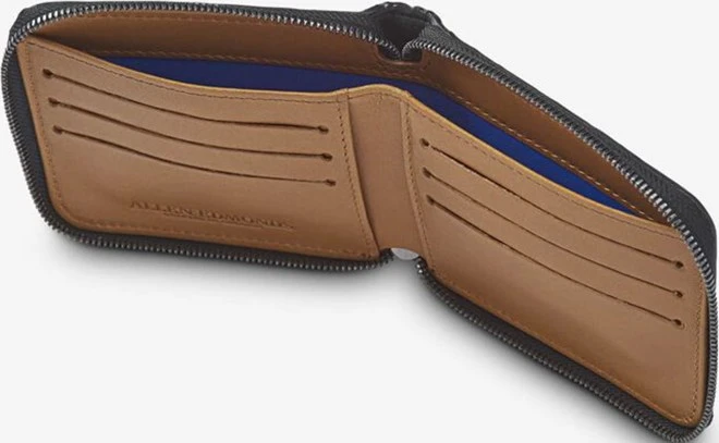 - Leather zip wallet with space for bills, cards and coins
