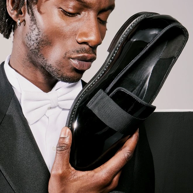 Today the old rules and categories just don’t apply anymore. Getting dressed up could mean lacing up a pair of sneakers or slipping into our most streamlined loafer. This incredibly refined style combines an ultra-streamlined shape with the timeless polish of glossy patent leather and a grosgrain keeper. As effortless as it is elegant, this is how you redefine looking your best.