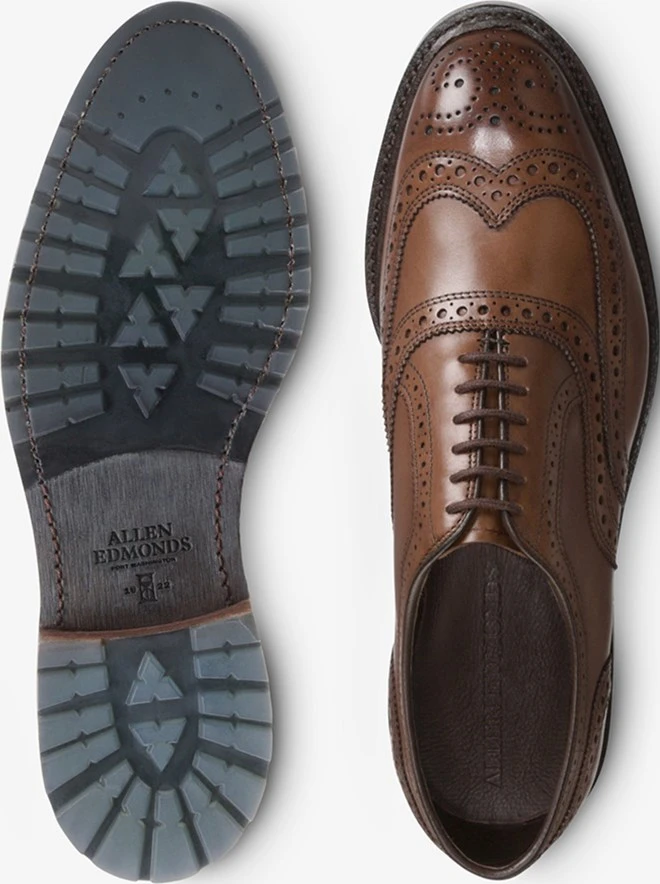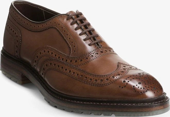 - Lace-up, dress-casual oxford shoe with brogue detailing