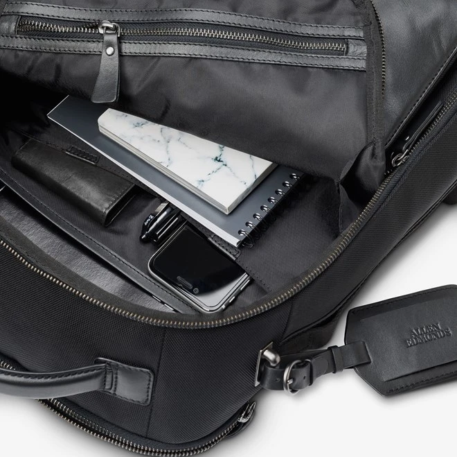 From daily commutes to business trips, travel light and smart with this sleek carryall. A nylon exterior gives it a sleek sturdiness without the weight of traditional bags. The range of storage options including two zippered exterior pockets and a large interior compartment allows you to securely stow electronic devices, charging cords and everything you need on the go.