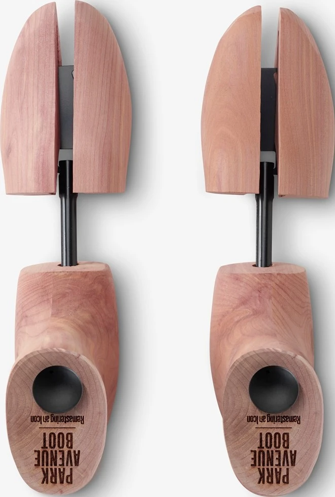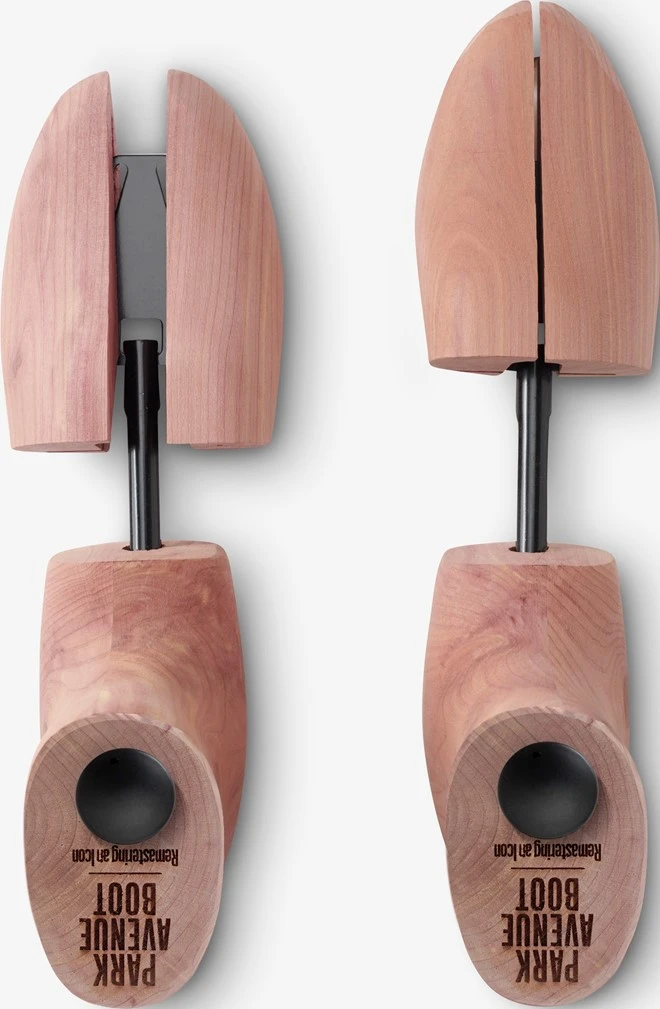 - Split-toe cedar boot trees with Park Avenue boot branding