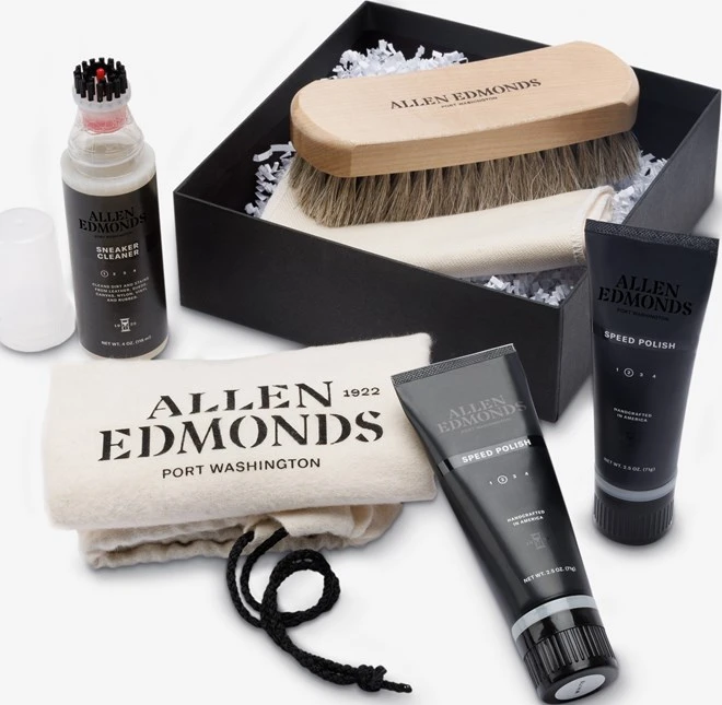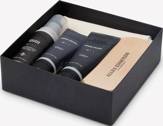 - Includes shoe bag, horsehair shine brush, shine cloth, white speed polish, black speed polish and 4 oz. bottle of sneaker cleaner